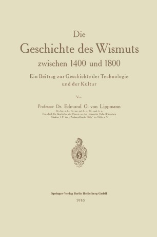 Die Geschichte Des Wismuts Zwischen 1400 Und 1800 Springerlink